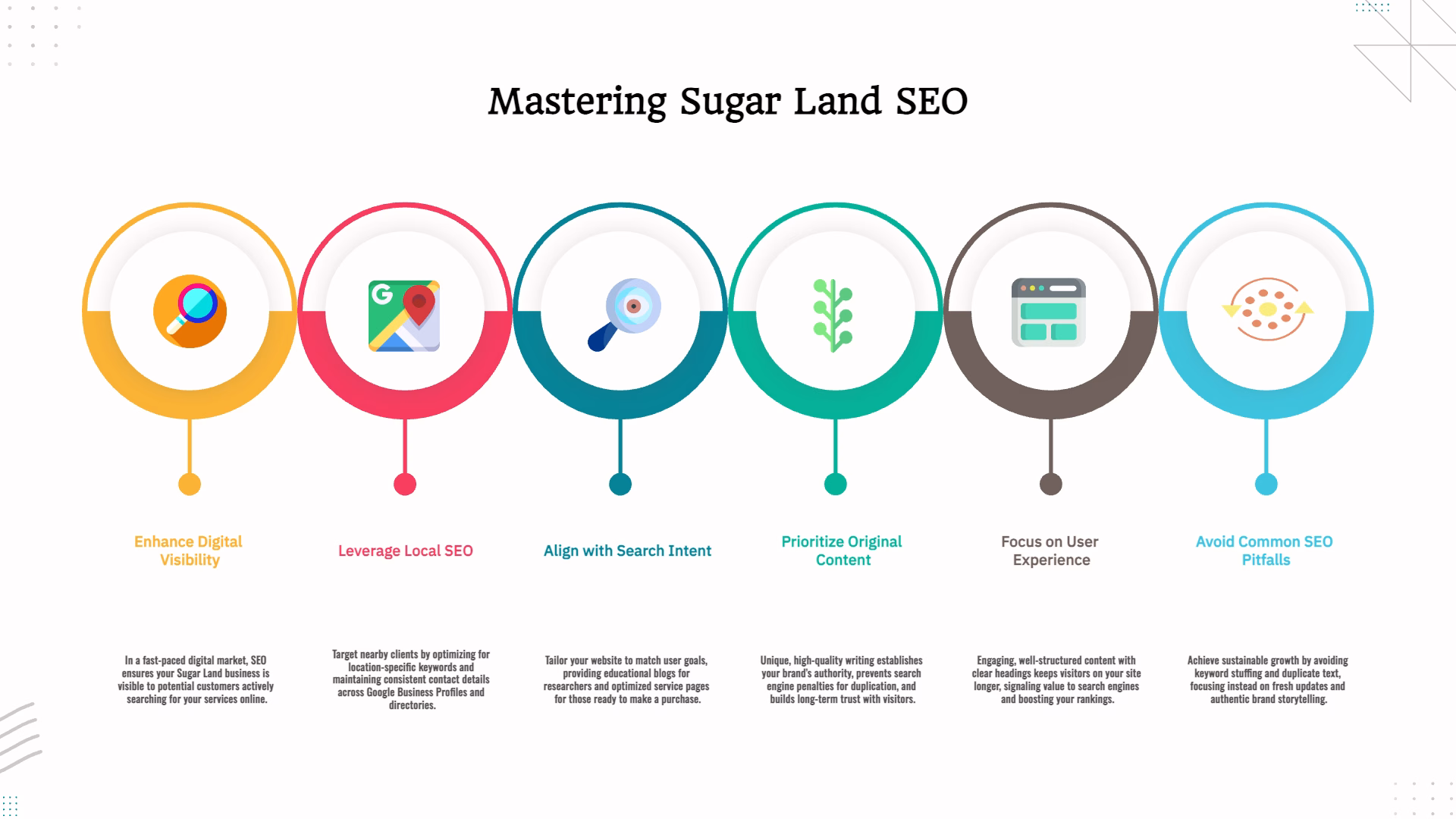 For businesses serving specific areas, local SEO delivers targeted visibility. Implementing Crockett SEO strategies ensures that when someone nearby searches for services such as “best dentist in Sugar Land” or “HVAC repair near me,” your business shows up among the top results. This kind of optimization focuses on connecting your company with nearby customers who are ready to act and looking for exactly what you offer within your service area.